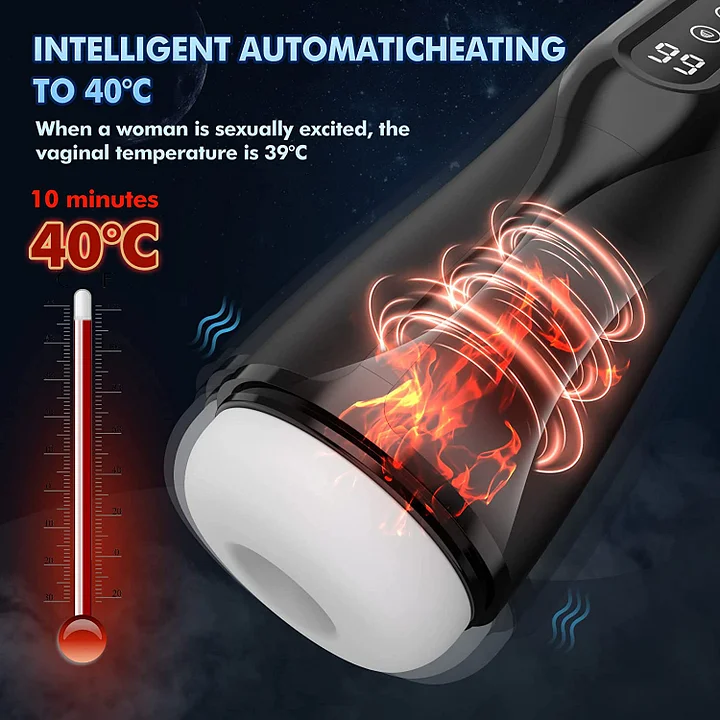 Automatic heating up to 40°C in 10 minutes, replicating the natural warmth of real intimacy.