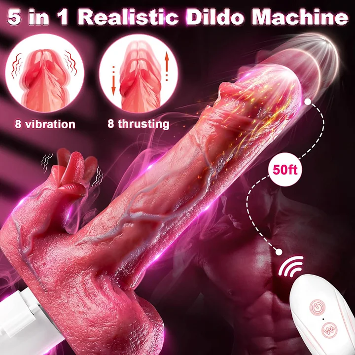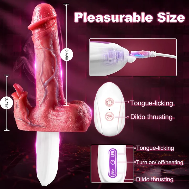 Hands-Free 8 Vibrating & Thrusting Remote Control Tongue-Licking Dildo G Spot Clitoral Anal Stimulation Vibrator